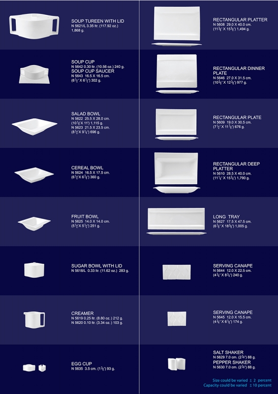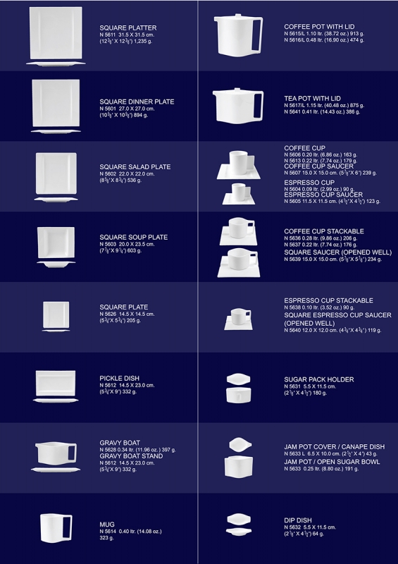 The challenge is how to modify a typical square rim or square coupe plate and make it look interesting, unique, simple and elegant. By bringing the best attributes of both square rim and square coup plates into one design concept. The solution is Prime. With rim design on two sides and coup design on the others we have created a square dinner service to have the look and feel of a rectangular one. Prime is the one and only masterpiece that bring magic on to your dining table. |