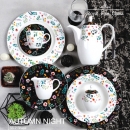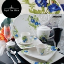 Royal fine china is the sister brand to the bone china product. It has the transparency close to the bone china product but with Distinctive modern design and special strength quality from the component of Alumina. |